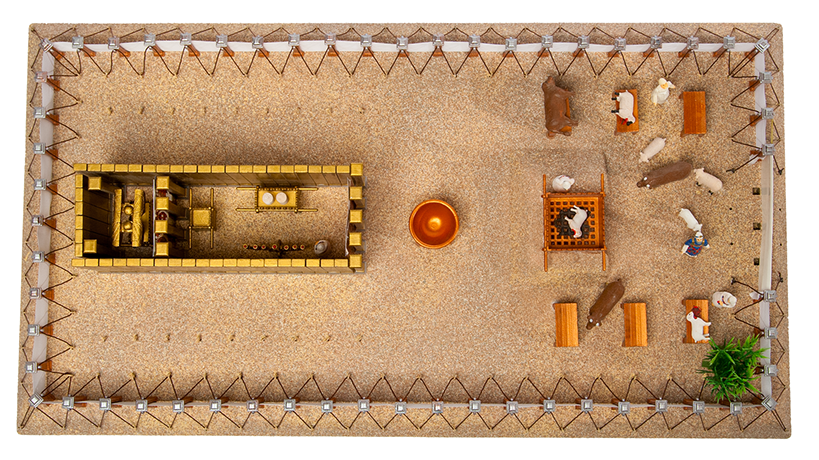 A painted tabernacle model kit showing the layout of the complete tabernacle in 1:90 scale.