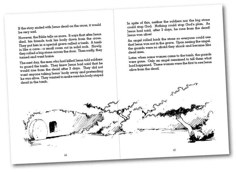 This 64-page booklet explains the gospel in a chronological manner from creation to the cross. Using expressive line art illustrations and carefully controlled text, the core message of the Bible is explained in simple-to-understand English so that even someone who uses English as a second language can clearly understand.