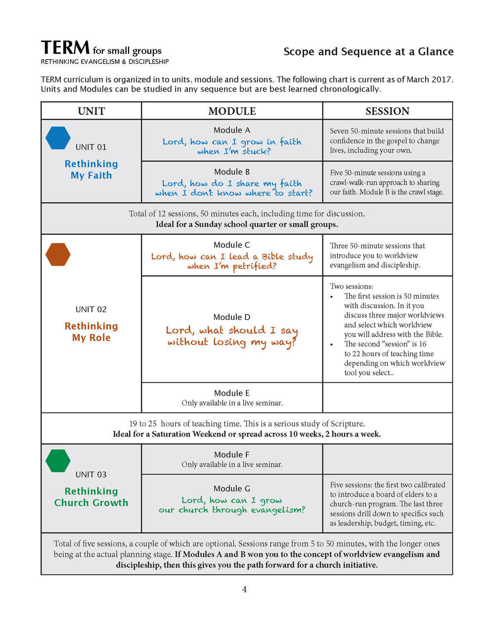 Module B: Lord, how do I share my faith when I don’t know where to start? Five 50-minute sessions using a crawl-walk-run approach to sharing your faith.