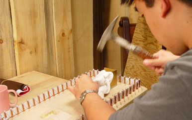 If you are using a hammer, place a thick paper towel or cloth on top of the frames so paint does not chip off as you hammer the frames in.
