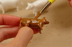 Paint the cows brown. Use a toothpick or an ultra-fine brush to paint the eyes black.