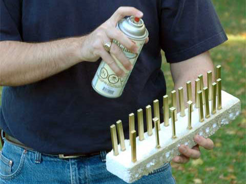 OR you could substitute the gold and bronze with spray paint instead of acrylic paint. The spray paint is more expensive, but much faster to paint (especially if you’re making more than one set). The bronze acrylic paint will still be needed in addition to the spray paint.