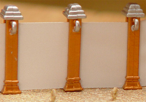 Paint the courtyard posts according to the colours stated in Exodus 27:17; 38:10, 11.