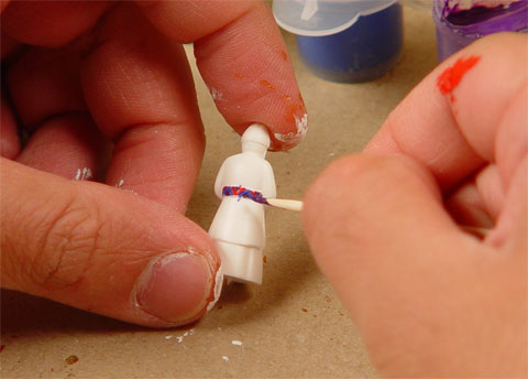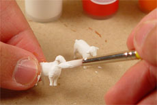 After the paint has dried, paint the priests with white caps and white robes. The white paint gives them a more realistic texture versus the plastic look.