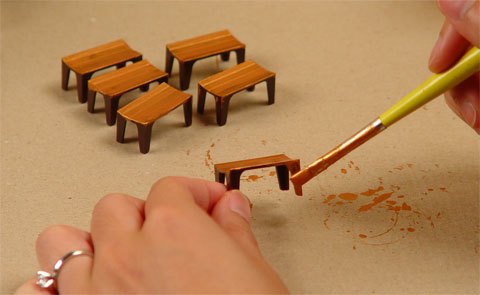 You could also use bronze spray paint for the furniture instead of a paint brush.