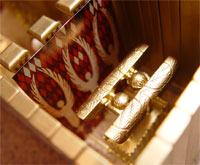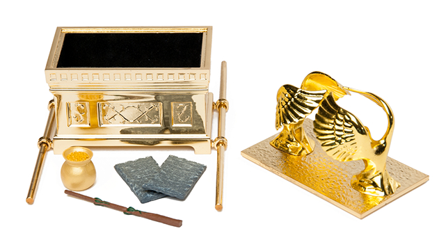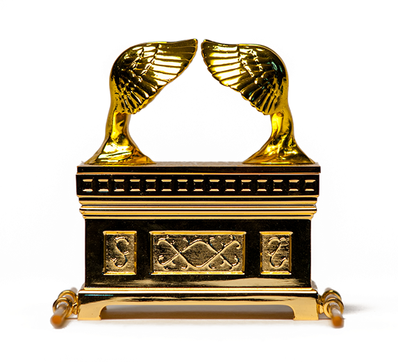 Within the Holy of Holies, shielded from the eye of the common man, was one piece of furniture comprising two parts: the Ark of the Covenant and the atonement cover (or “mercy seat”) on top of it. The ark was a chest made of acacia wood, overlaid with pure gold inside and out. It was 3 feet, 9 inches long and 2 feet, 3 inches wide and high. God commanded Moses to put in the ark three items: a golden pot of manna, Aaron’s staff that had budded, and the two stone tablets on which the Ten Commandments were written. We will discuss these three objects in further detail below.